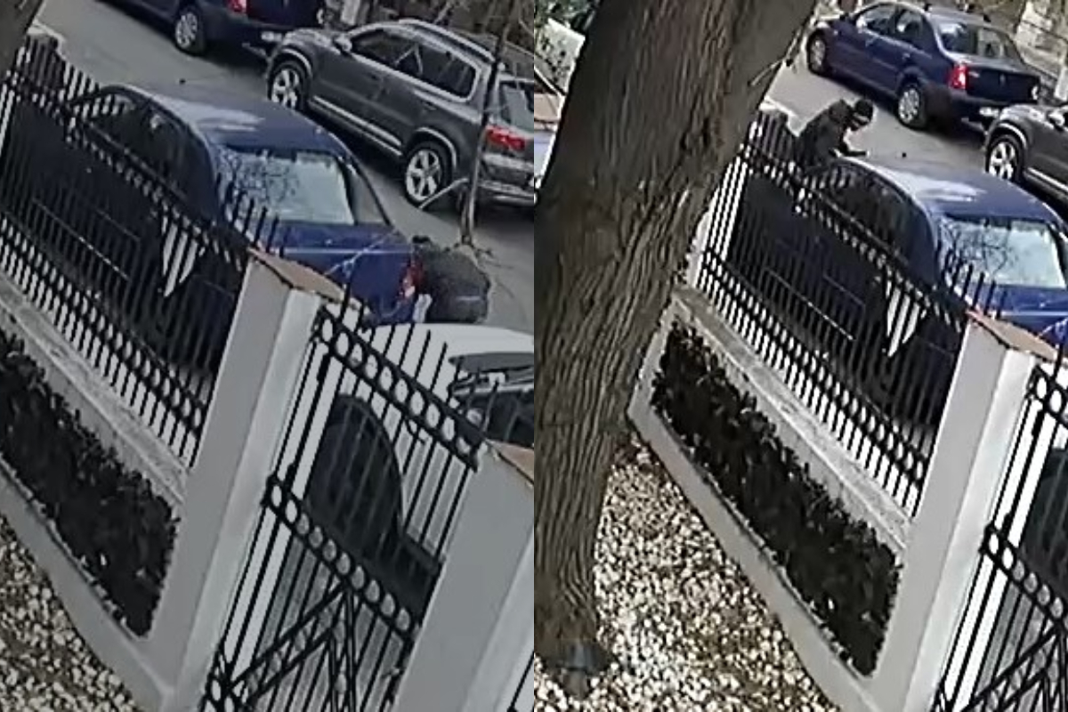 Ulterior, bărbatul ar fi încercat să deschidă ușile cu forța, după care s-ar fi urcat pe capotă și ar fi lovit parbrizul cu picioarele.