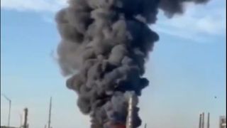 După cum arată videoclipurile postate pe rețelele sociale, un fum negru masiv se ridică din instalația de rafinare a petrolului.