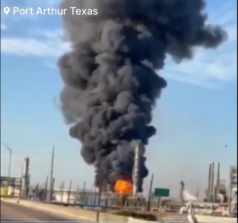Following reports of an explosion, a massive fire can be seen at the Valero oil refinery in Port Arthur, Texas. pic.twitter.com/I3UYBTS41A