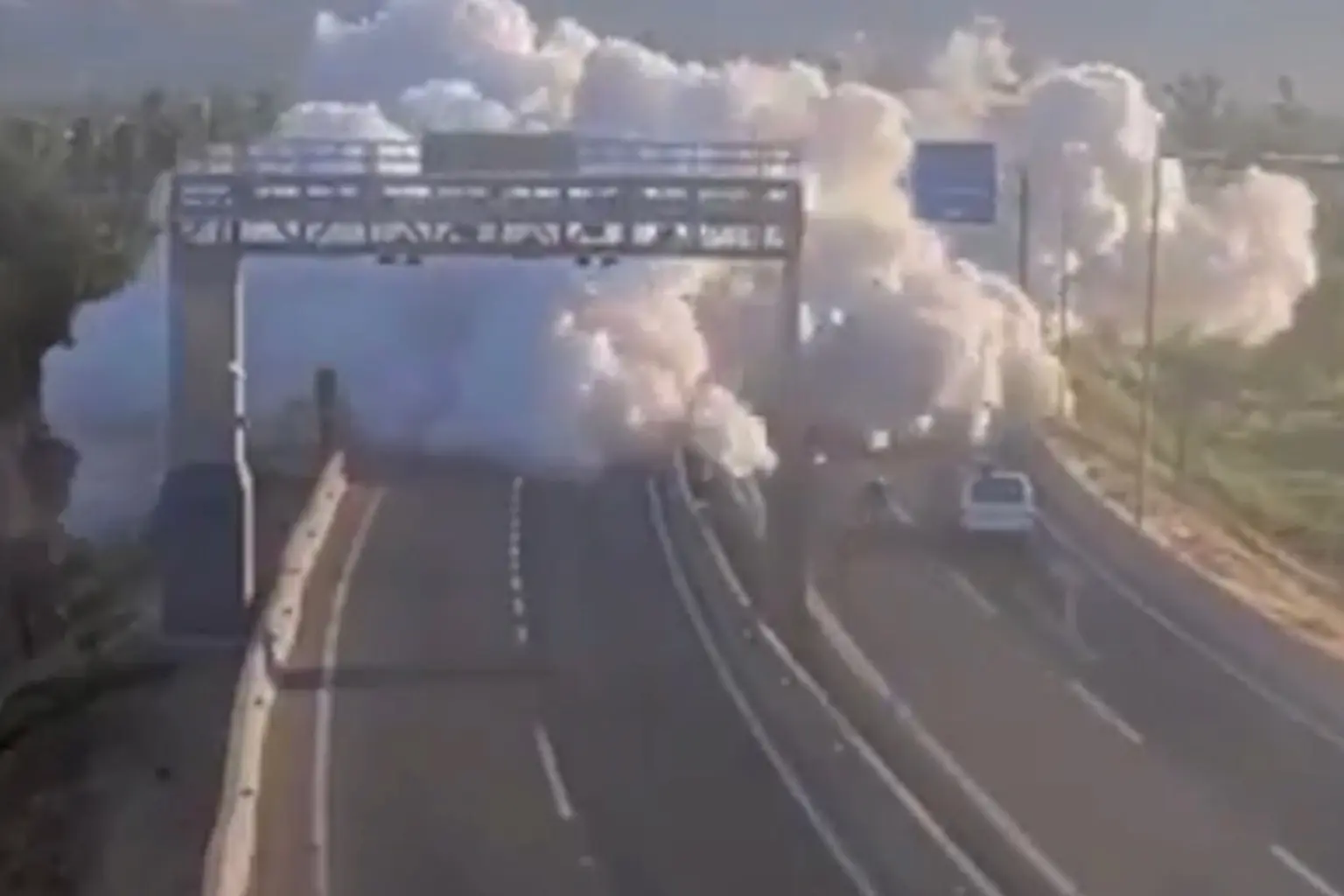 Imagini îngrozitoare au surprins momentul în care cisterna care transporta gaze lichide s-a răsturnat și a lovit o barieră, în Renca, Santiago. Un nor uriaș de fum alb a cuprins toate mașinile aflate pe autostradă.