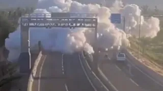 Shocking footage: A #GasTruck Overturned and Exploded on a Highway in #Renca, near Santiago, Chile, killing 4, injuring 17.