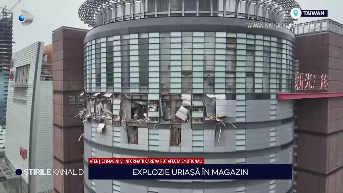 „O explozie uriașă s-a produs în Taiwan, la etajul al 12-lea al unui magazin. Deflagrația, care a spulberat întregul etaj, a lăsat în urmă patru morți și opt răniți. Din primele informații, explozia ar fi fost provocată de scurgeri de gaze”.