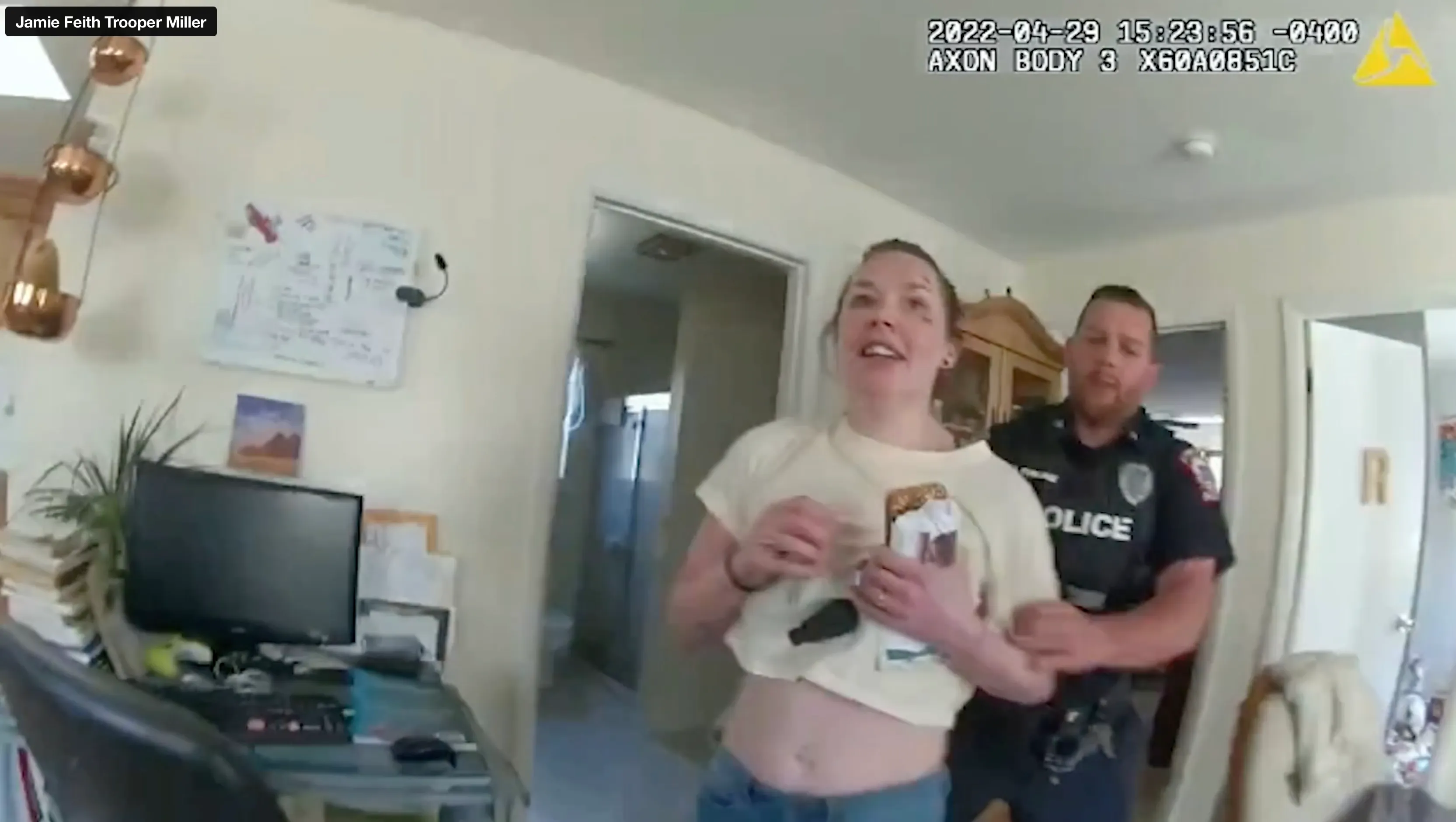 Ofițerii răspundeau la un apel pentru dispute domestice la domiciliul pe care Jamie Feith, în vârstă de 34 de ani, îl împărțea cu partenerul ei și cu cei trei copii ai lor.