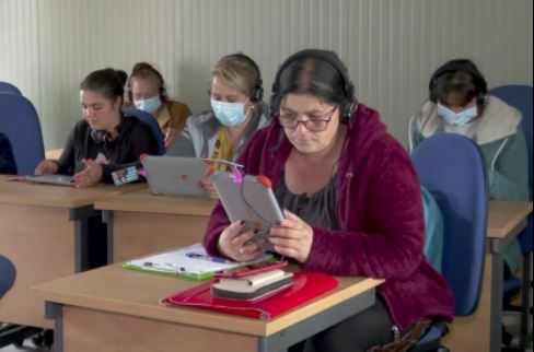 În curtea școlii din Săcele au fost montate containere modulare care au devenit săli de curs. Lecțiile sunt gratuite, iar pentru ca doamnele să învețe cât mai ușor ele au la dispoziție și tablete sau laptopuri pe care vor putea lucra.