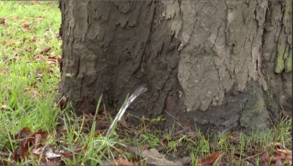 Fenomen rar în Timișoara: dintr-un copac situat într-un cartier din oraș țâșnește cu presiune apă