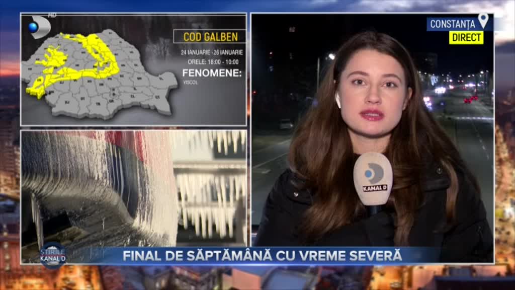 Bună seara, Cristian și bun găsit tuturor! Din această după amiază au intrat în vigoare o atenționare meteorologică, dar și un cod galben, toate valabile până pe douăzeci și șase ianuarie. Informarea meteo se referă la precipitații mixte și polei în toată țara, cu excepția Olteniei. Vântul va sufla cu putere, vorbim de optzeci de kilometri pe oră la munte și cincizeci și cinci de kilometri pe oră în restul țării, mai ales în Oltenia, Transilvania și Moldova, însă intensificările vântului pot continua și după expirarea acestei informări. Codul galben vizează doar zonele de munte la peste o mie șapte sute de metri altitudine. Ninge viscolit, iar vântul va sufla la rafală chiar și cu o sută de kilometri pe oră, a transmis Raluca Sevastru.