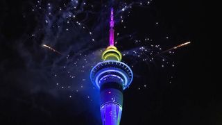 Locuitorii din Noua Zeelanda au intampinat Noul An cu un spectaculos foc de artificii. In Auckland, s-a folosit aproape jumatate de tona de material pirotehnic lansat de pe celebrul Sky Tower.