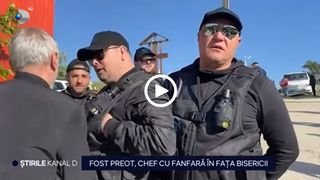 VIDEO Fost preot, chef "neortodox" cu fanfară în fața bisericii. Un scandal cu jandarmi și tabere de enoriași