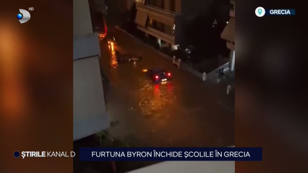 VIDEO Furtuna Byron paralizează Grecia. Vremea extremă a adus precipitații record, inundații și școli închise