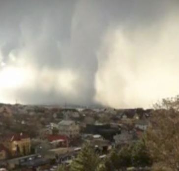 Proportiile acestui fenomen fara precedent s-au vazut, la fel de apocaliptic si pe un camp la iesire din oras. Cerul insorit a fost acoperit rapid de un nor urias ce a adus furtuna devastatoare.