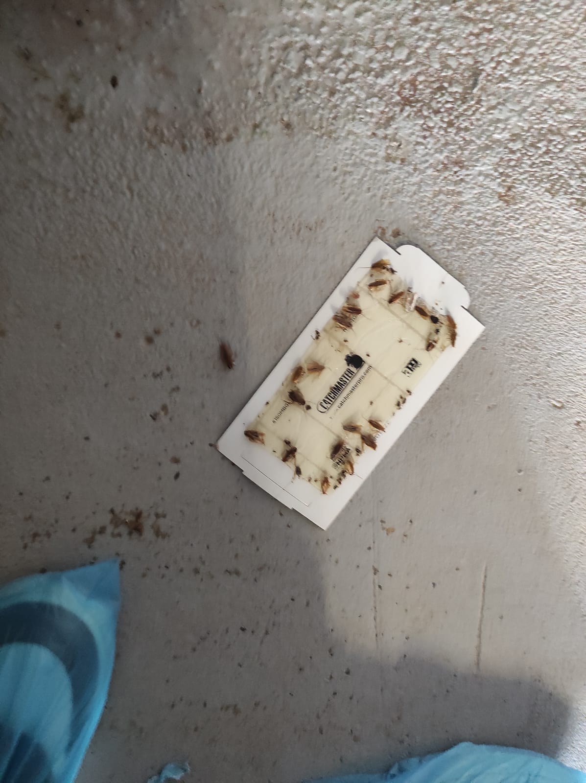 Pe masa de lucru existau semifabricate, pe care se aflau insecte, muște, iar sub masă există o folie lipicioasă plină cu muște.