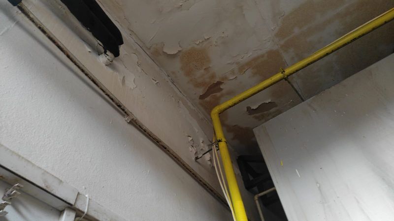 Pereții laterali sunt murdari, iar la îmbinarea tavanului cu pereții laterali există rugină.