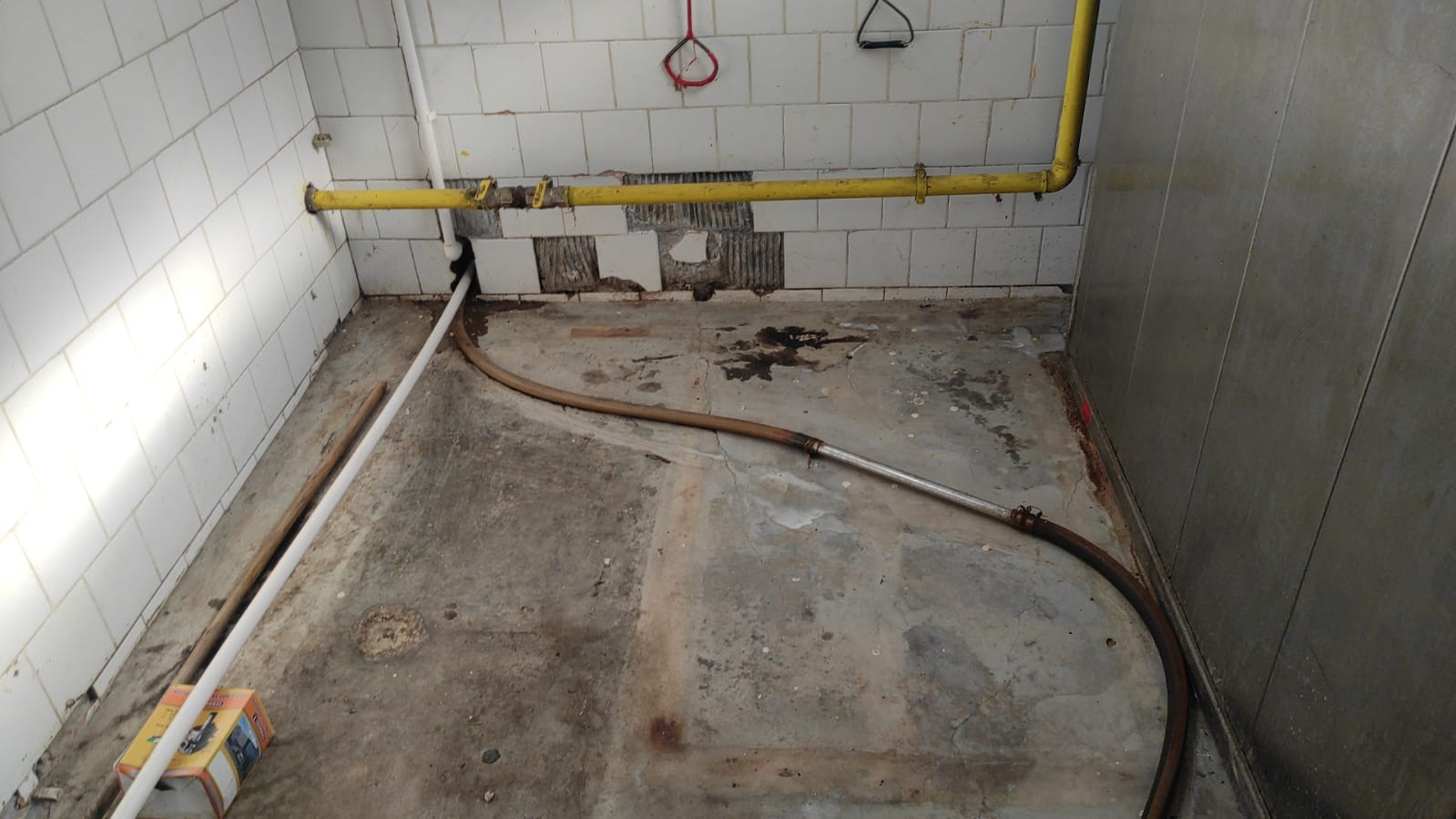 În spațiul de producție se află rastele din metal ruginite cu strat gros de grăsime, în care se aflau produse de patiserie fără dată sau limită de consum.