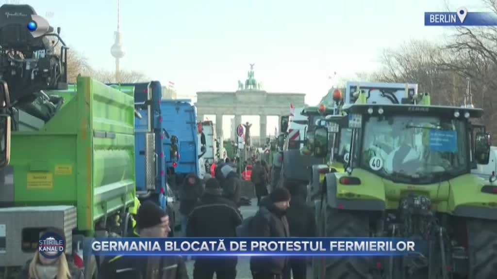 „Coloanele pe zeci de kilometri s-au întins inclusiv în capitala Berlin. Poliția a numărat mii de tractoare, camioane, dube și remorci în întreaga rețea de autostrăzi. Mulți oameni nu au putut ajunge la serviciu. Traficul a fost blocat de convoaie chiar și la granița cu Franța. La grevă s-au alăturat și transportatorii, nemulțumiți de taxele pentru camioane. Fermierii germani protestează față decizia Guvernului Federal de a reduce subvențiile la motorină în agricultură”, a transmis Christian Sabbagh, prezentatorul Știrilor Kanal D.