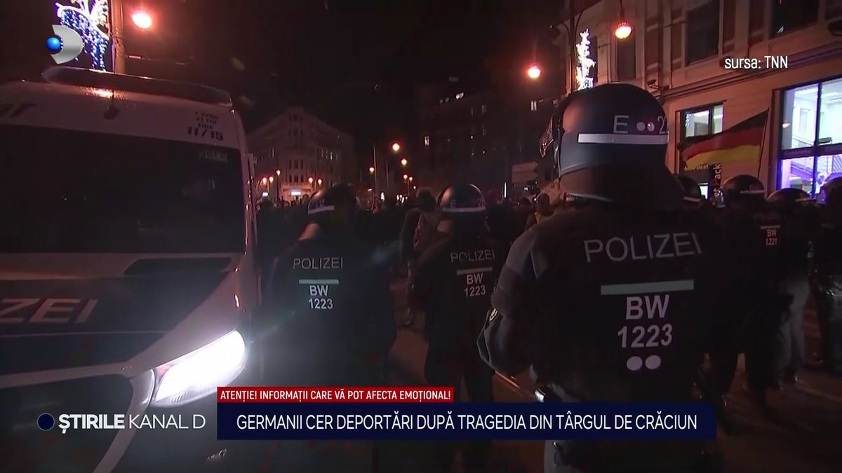 Protestatarii germani au ieșit pe străzi pentru a cere deportări în masă după masacrul din târgul de Crăciun. Nemții nu mai vor străini la ei în țară pentru că, aproape în fiecare an, se întâmplă astfel de tragedii la târgurile care ar trebui să aducă bucurie celor care le trec pragul”, a spus Christian Sabbagh.