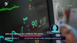 "Asistența recunoaște și scrie în fișă. A greșit și a administrat greșit tratamentul. Mama fiind cunoscută ca alergică la anumite medicamente, asistenta i-a dat un gram de Cefort mamei mele, ceea ce a băgat o șoc anafilactic fără semne, în stoc cardio-respirator și comă", a povestit fiica pacientei.