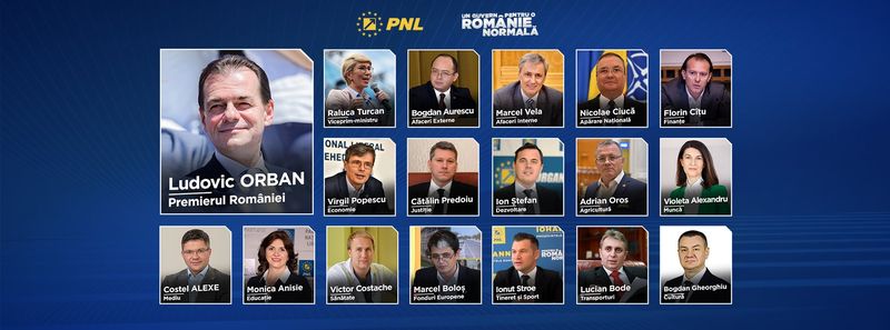 Orban propune 15 miniştri şi un vicepremier – Raluca Turcan, prim-vicepreşedinte al PNL. Guvernul Orban este format din profesori, economişti, ingineri, jurişti şi medici. Ludovic Orban a cooptat în echipa sa un diplomat de carieră – Bogdan Aurescu, care lucrează în MAE din 1996, dar şi un militar de carieră, generalul Nicolae Ciucă, unul dintre cei mai succes