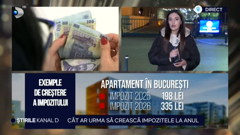 Pentru a ilustra impactul noilor taxe, au fost oferite două exemple concrete: un apartament în București, pentru care impozitul anual ar putea crește de la 200 de lei la 350 de lei, și o locuință în mediul rural, unde impozitul ar urca de la 120 la 200 de lei.