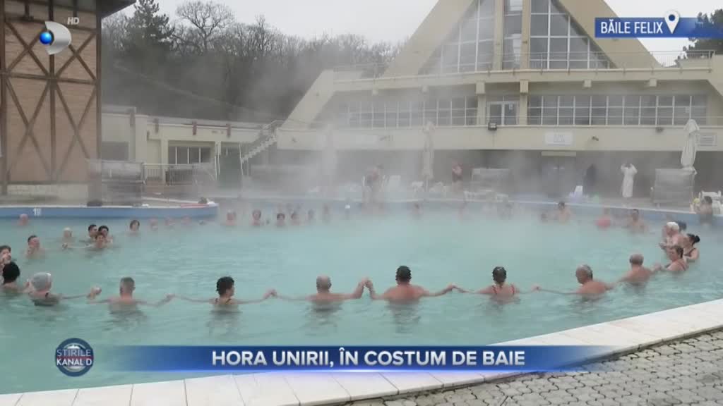 Zeci de români au avut parte de o petrecere pe cinste, într-o piscină în aer liber. S-a întâmplat în stațiunea Băile Felix, unde turiștii au jucat hora unirii îmbrăcați în costume de baie, dar s-au distrat și pe ritmuri de zumba. Imaginile le vedeți chiar acum, a transmis Cristian Sabbagh.
