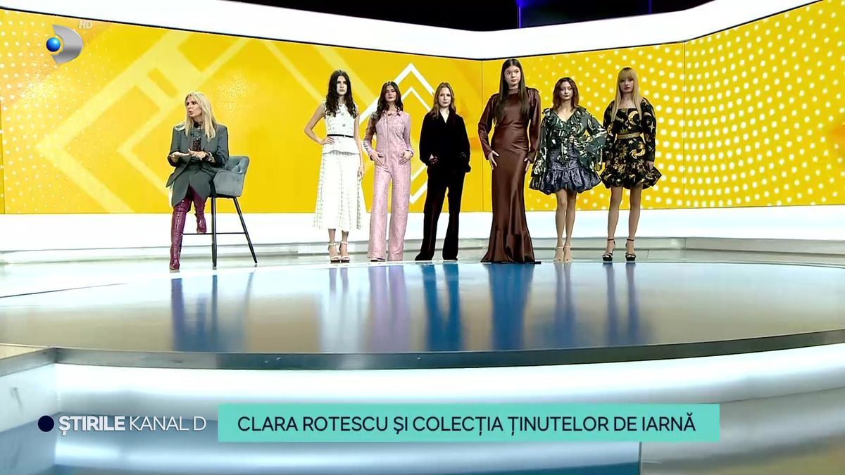 „Clara Rotescu este designerul care mizează mere pe ținute care să se potrivească fiecărei persoane în parte și, astfel, să reflecte personalitatea. Cum sezonul rece și-a făcut simțită prezența, creatoarea de modă a venit în studioul Știrilor Kanal D pentru a prezenta câteva idei de ținute pentru iarna 2024-2025”, a spus Cristina Dorobanțu.