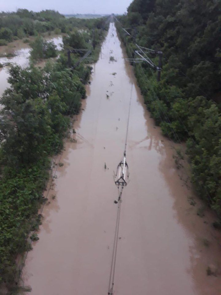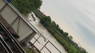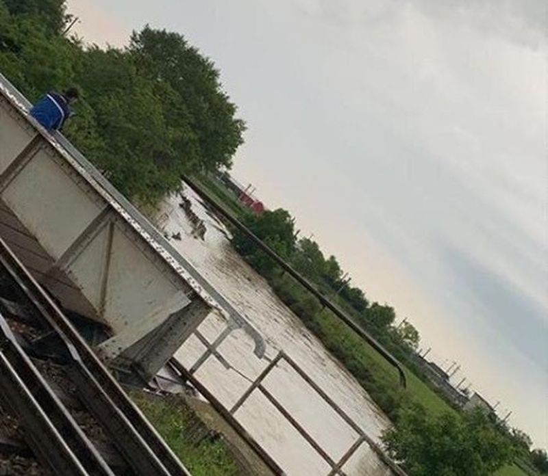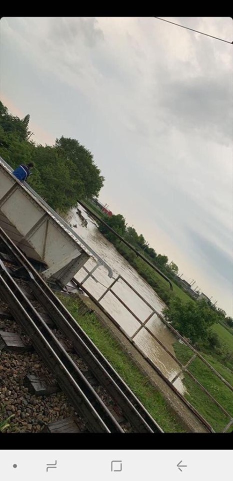 Imagini dramatice la Mizil. Un tren nu poate intra în gara din localitate pentru că un pod s-ar fi rupt.