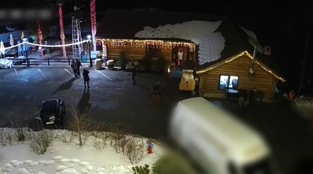 Se vede cum sparge două sticle și se întoarce în interior, unde conflictul a continuat: „A spart o sticlă. Soția acestuia a încercat să-l oprească. Nu a reușit. A intrat cu acea sticlă înăuntru și a lovit de patru, cinci ori.”