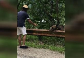 Relaxati, ca si cum ar fi avut de-a face cu niste veverite, oamenii hranesc puii de urs din palma si-si fac poze cu ei. Un cunoscut vlogger a filmat toata scena si a postat-o pe internet.