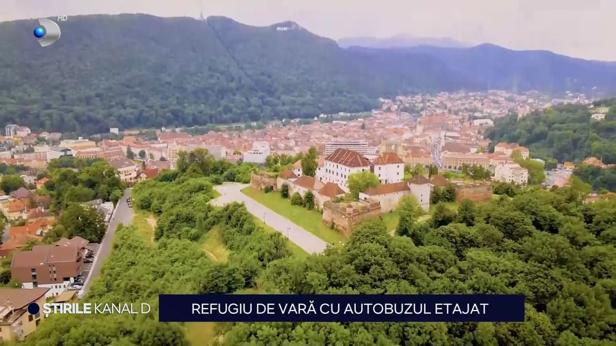 „În Brașov, unul dintre cele mai populate orașe din România, localnicii și turiștii caută oazele de răcoare și zonele unde pot respira aer curat. Soluția perfectă este autobuzul etajat, de unde călătorii admiră peisajele de vis, dar se și răcoresc, la înălțime, pentru că autocarul este decopertat. Unde mai pui că o călătorie costă cât o sticlă de apă”.