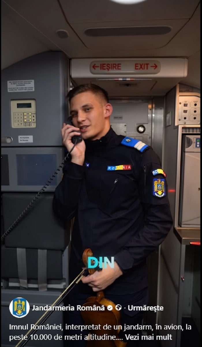 Ziua Națională a României, 1 Decembrie 2025. Un tânăr jandarm român a emoționat pe toată lumea după ce a interpretat imnul național al României la peste 10.000 de metri altitudine. El a cântat la vioară într-un avion al companiei Tarom.