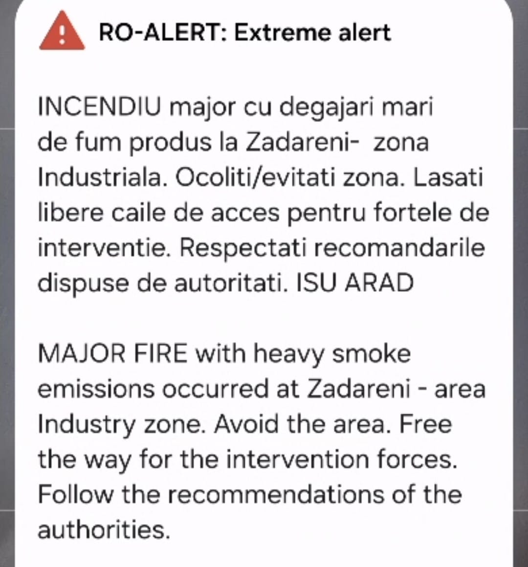 Din cauza cantității semnificative de fum rezultat, care a acoperit întregul oraș, autoritățile au trimis trei mesaje de avertizare a populației prin sistemul RO-ALERT, pe o rază de trei kilometri.