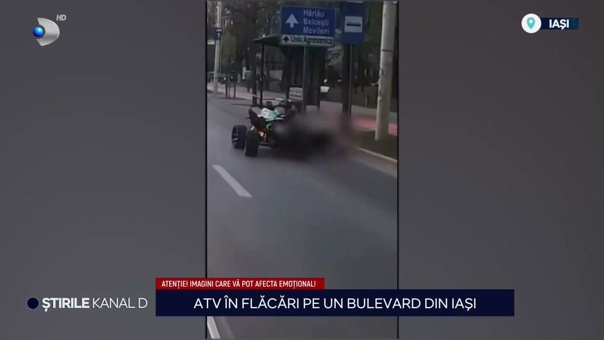 Un incident dramatic a avut loc recent pe un bulevard din Iași, unde un ATV a fost cuprins de flăcări în timpul deplasării.