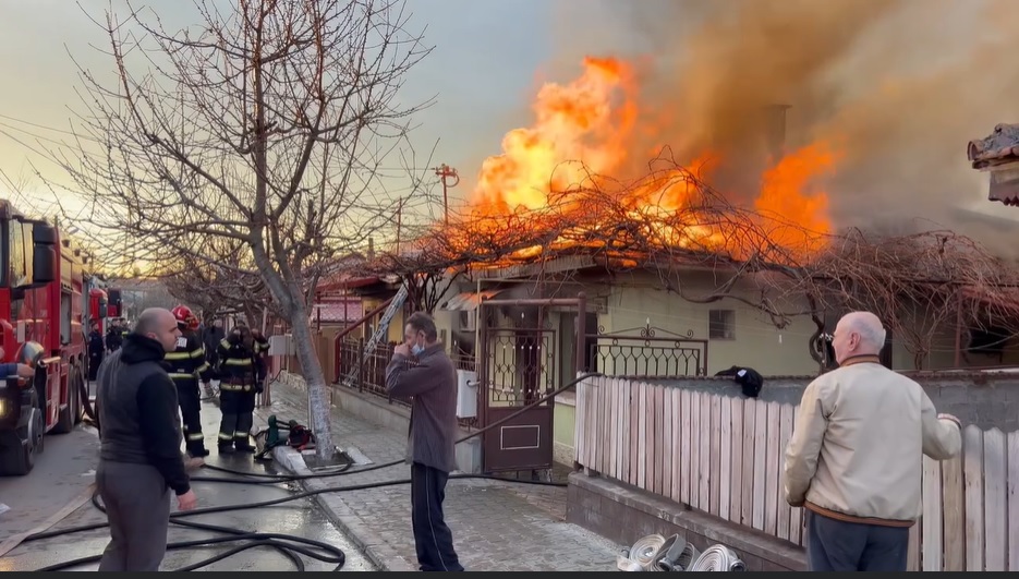 Incendiu puternic la o casă din municipiul Medgidia. Flăcările au cuprins o locuință situată pe strada Cameliilor.