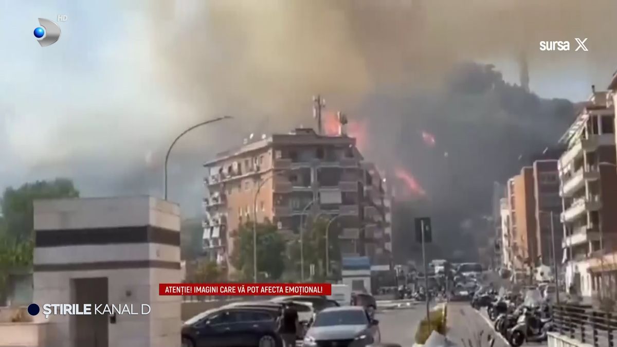 „Un incendiu de proporții a izbucnit ieri la Roma! Sediul televiziunii publice, Observatorul Astronomic, dar și alte clădiri au fost evacuate de urgență din calea focului care ardea pe un deal din apropiere. Flăcările s-au extins rapid, iar coloane uriașe de fum au acoperit cerul capitalei italiene. A fost nevoie de mobilizarea a zece echipaje de pompieri și două elicoptere de stingere pentru a ține sub control flăcările. Cel mai probabil, incendiul a avut loc ca urmare a temperaturilor extrem de ridicate din ultimă perioadă în Italia. Din fericire, nu au fost victime”, a spus Cristina Dorobanțu.