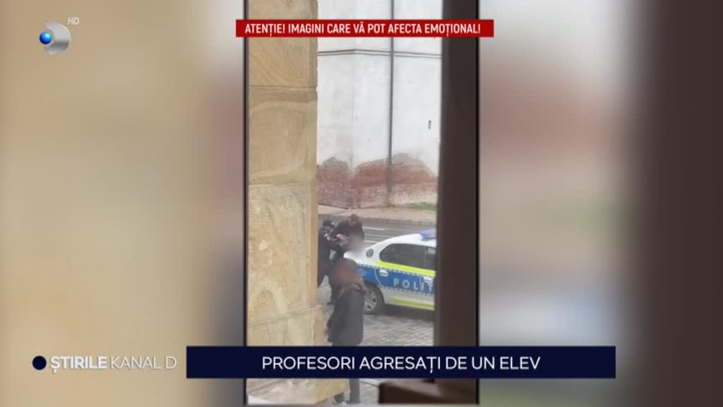 „Incident șocant în Târgu Mureș. Un elev de clasa a VIII-a a bătut un profesor în școală, după ce abia fusese amendat de poliție că a făcut scandal la ore. De față era și mama băiatului, care a început să amenințe atunci când fiul ei a fost pus la pământ de unul dintre paznici.