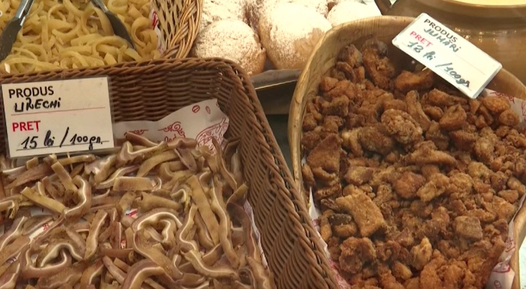 Printre cele mai scumpe produse se numără jumările, care costă 120 de lei pe kilogram, adică aproape dublu față de prețurile din comerț. Cârnații la garniță, ceafa afumată, pieptul și frigăruile de pui sunt vândute cu 15 lei pe 100 de grame, iar cartofii costă 10 lei pe 100 de grame.