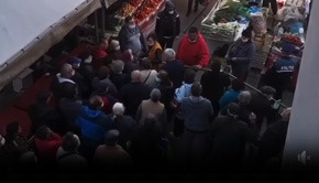 La Craiova, peste 200 de vârstnici, speriaţi că-n cele două ore pe care le au la dispoziţie nu vor apuca să cumpere tot ce le trebuie, s-au nimerit toți o dată în fața Pieței Centrale și s-au călcat în picioare la intrare.