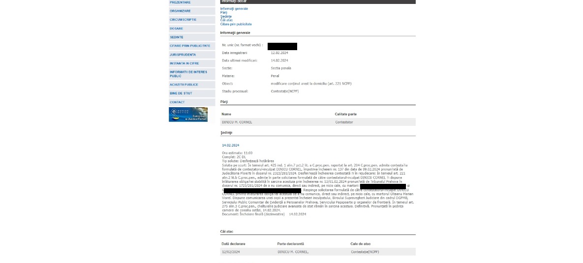 O nouă zi importantă pentru Cornel Dinicu. Astăzi va fi judecată contestația privind obligațiile arestului la domiciliu. Cornel Dinicu cere să poată vorbi cu iubita și cu fiul său.