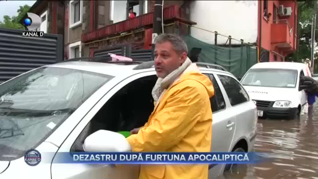 Pentru că nu a primit la timp ajutorul sperat de la autorități, acest bărbat s-a apucat să scoată apa din autoturism cu un vas de bucătărie. Mai bine de două ore s-a chinuit, singur.