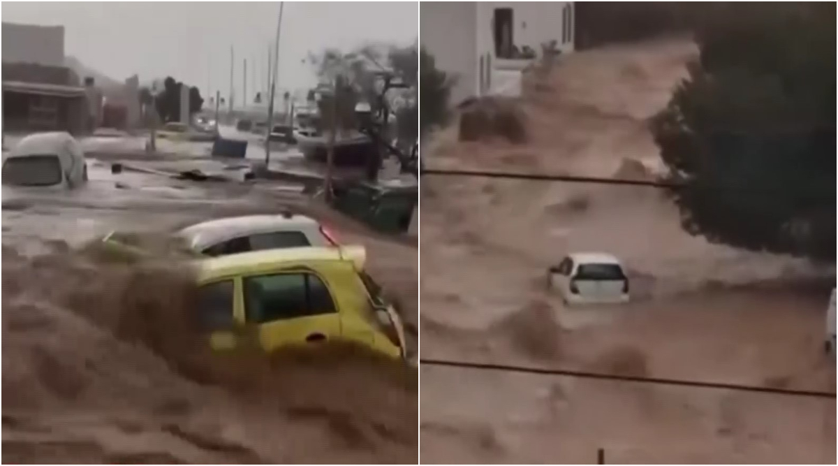 „Imagini apocaliptice vin din paradisul grecesc din insulele Paros și Mykonos, unde un cod roșu de furtuni a făcut prăpăd. Străzile s-au transformat în râuri, în timp ce zeci de mașini au fost luate pe sus de viituri puternice. Atenție, urmează imagini cu un puternic impact emoțional!”.