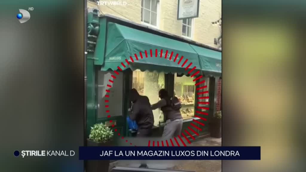 VIDEO Jaf spectaculos în miezul zilei, la Londra! Doi hoți înarmați cu un baros au spart vitrina unui magazin de lux și au furat, în vâteva secunde, zeci de bunuri valoroase