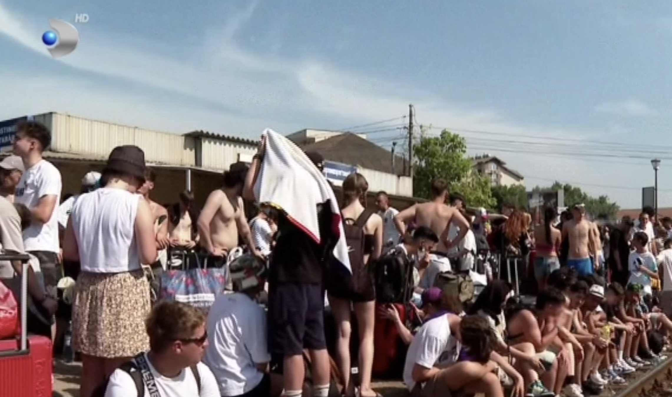 Pe o căldură de te sufoca, sute de tineri au fost nevoiți să stea cu orele în halta din Costinești, să aștepte un tren care să îi scoată din stațiunea blocată.