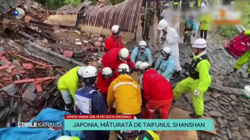 „Un taifun extrem de violent a făcut prăpăd în Japonia! Vântul a bătut cu rafale de 200 de km/ în sudul țării. Până în acest moment, cel puțin trei oameni au murit și alți 50.000 au fost evacuați din calea dezastrului. În urma furtunii puternice, mai multe zone au fost inundate, iar mii de gospodării au fost lăsate fără curent electric. Totodată, sute de zboruri au fost anulate. Acesta este cel mai puternic taifun care a lovit Japonia în acest an”, a spus Simona Pătruleasa.