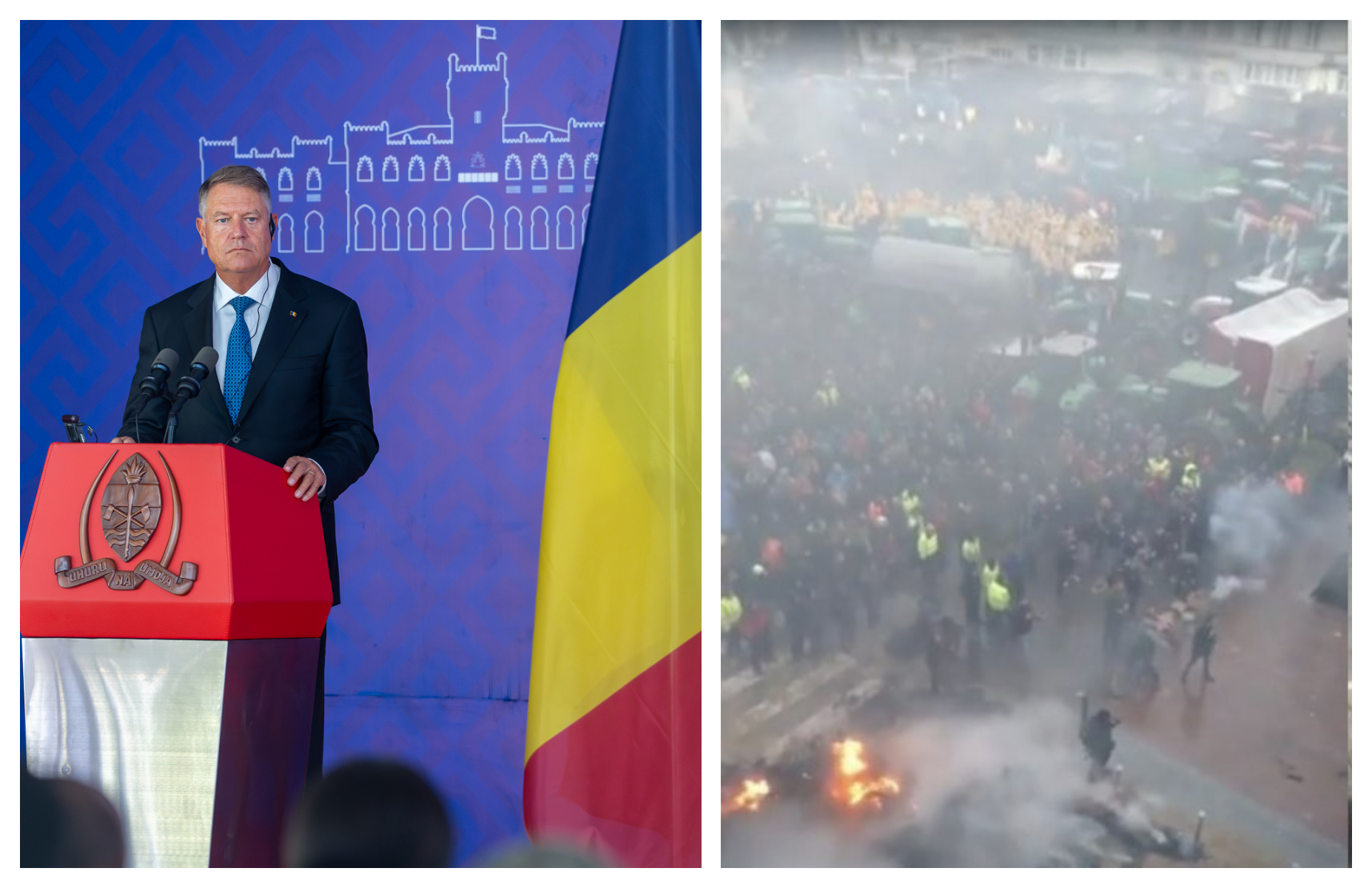 2 din 4 | Iohannis este în pericol la Bruxelles, în timp ce fermierii protestează.