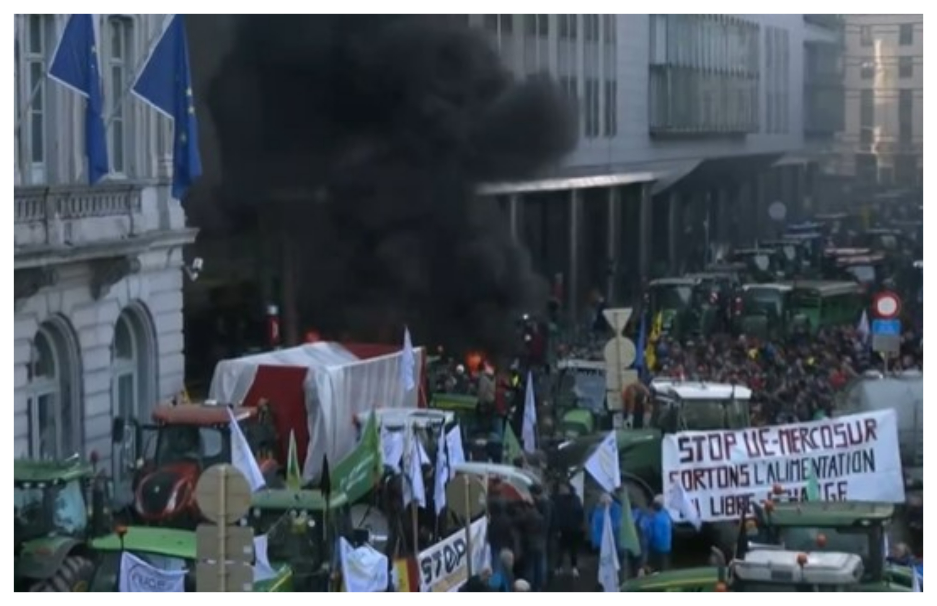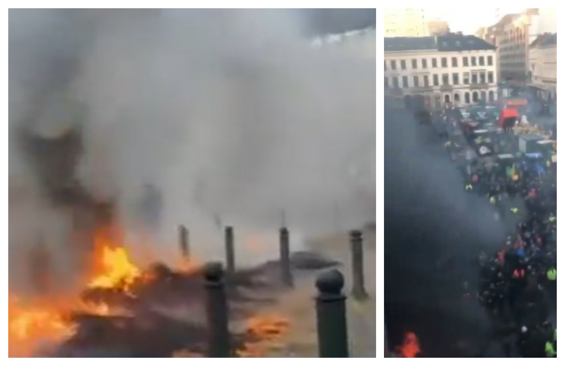 Gli agricoltori in protesta a #Bruxelles sono arrivati sotto la sede del #Parlamento ed hanno acceso dei fuochi.