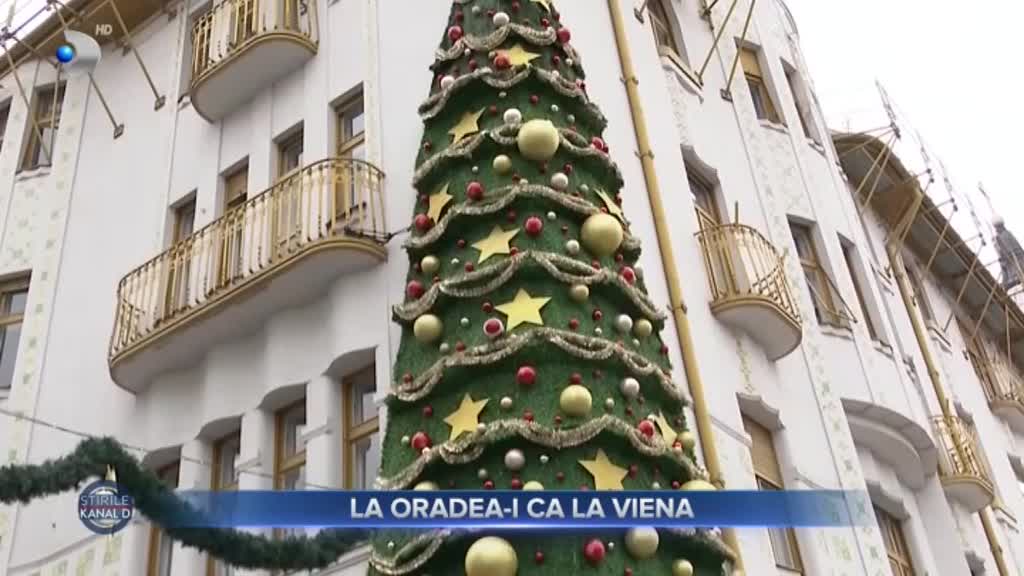 Oradea se poate compara în aceste zile cu Praga sau Viena, marile capitale europene care în luna decembrie atrag sute de mii de turiști. Asta după ce clădirile emblematice din oraș au fost decorate cu urși polari, brazi, stele și îngeri, după modelul care de câțiva ani are mare succes în Occident. Conceptul a fost gândit de artiștii locali care au vrut să dea puțină culoare Târgului de Crăciun, a transmis Cristina Dorobanțu.