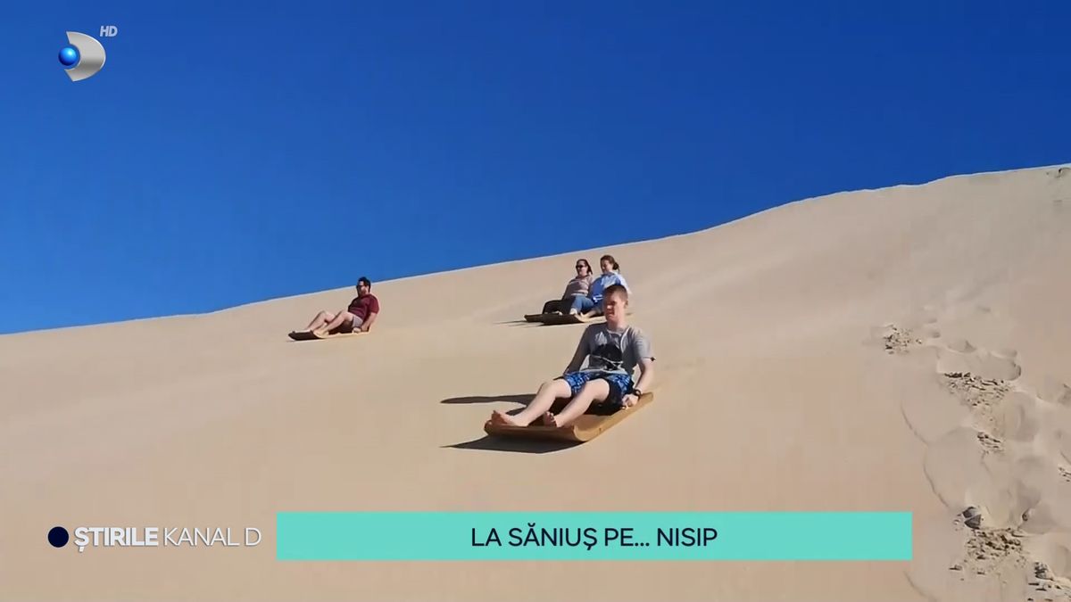 „Cu sania pe dunele de nisip. E o activitate la modă în zonele deșertice, iar cei care au încercat-o par să fie încântați.