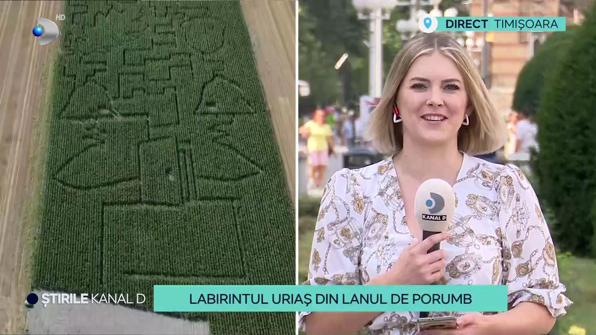„Un labirint uriaș, într-un lan de porumb, e cea mai nouă atracție de la granița țării noastre. Colega noastră de la Timișoara, Iulia Dumitrașcu, ne spune cât durează să ieși din el”, a spus Cristina Dorobanțu.
