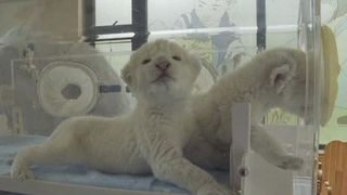 Pentru ca sunt inca foarte mici iar mama lor se afla la prima nastere si nu stie cum sa aiba grija de ei, cei doi pui de leu sunt tinuti in incubator.