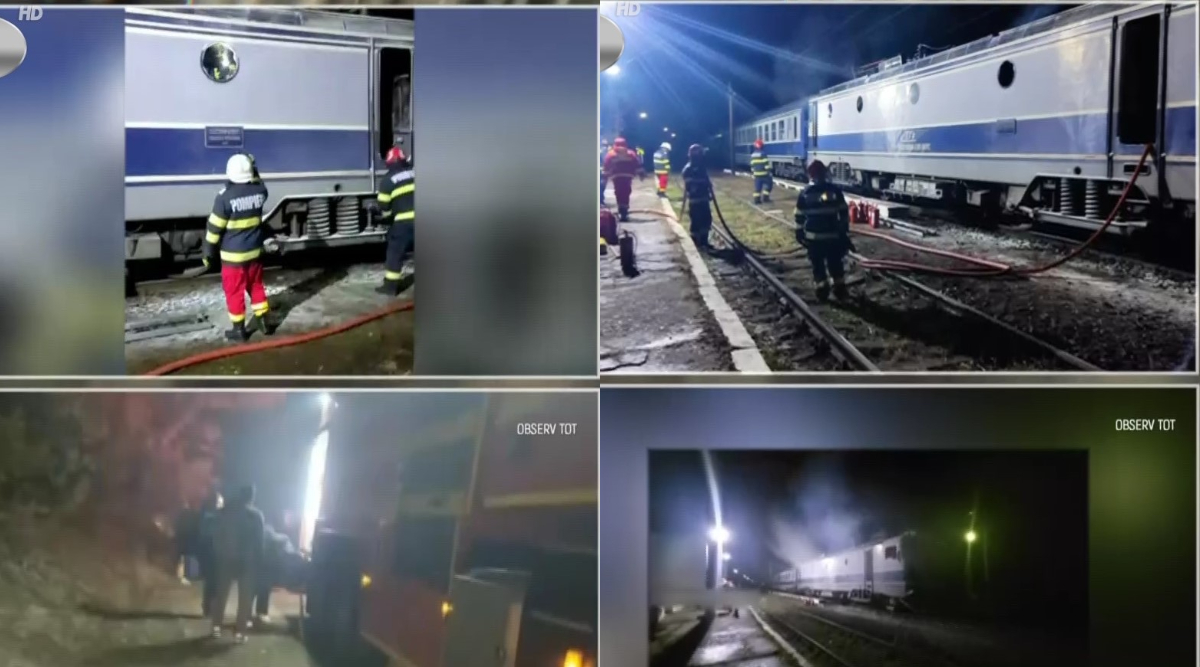 „Au fost momente de panică, în această dimineață, pentru 300 de călători aflați într-un tren ce urma să ajungă în Gara de Nord. Locomotiva a luat foc în Gara Balota, din județul Mehedinți, unde pasagerii au fost dați jos din vagoane pentru ca pompierii să poată interveni. Cu mai mult detalii vine colega mea, Teodora Argint”, a spus Cristina Dorobanțu.