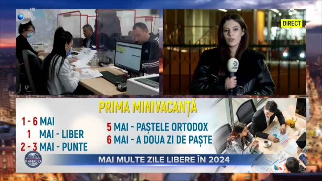 „Guvernul a stabilit mai multe zile libere anul viitor pentru bugetari. Spre exemplu, aceștia vor avea până la 6 zile consecutive de 1 mai. În total, au fost stabilite trei minivacanțe: în mai, august și decembrie. Diana Buzea are detalii”, a transmis Christian Sabbagh, prezentatorul Știrilor Kanal D.